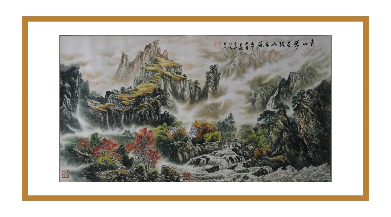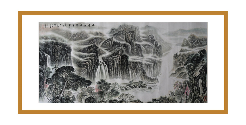欣賞譚老的畫作,使人有一種難以言表的美感,問及原因,他說:“為了研究山水,我閱讀了大量古、今書籍,我發(fā)現(xiàn)歷朝歷代對山水國畫都相當重視,山水被視為鎮(zhèn)宅的代名詞,一直以來在帝王家它都是以圖騰的形式存在的。”但為了能夠更好地傳承歷史文化,他鉆研國學,將儒、釋、道的精髓理念及思想融入到作品中,追求創(chuàng)造的是一種“和合”之感,讓這大氣之圖騰成為真正意義上的圖騰。